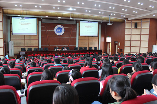 【本网讯】 3月24日下午,美国赛伦牧州立大学终身教授、波特隆商学院市场及决策科学系主任汤在勇应邀到我院龙泉校区作了《模型思维与应用》的学术讲座。党委书记赖廷谦、副院长贺盛瑜、党委常委党政办主任肖月强、科技处、各文科学院领导、相关教师和同学200余人参加了讲座,讲座由贺盛瑜主持。