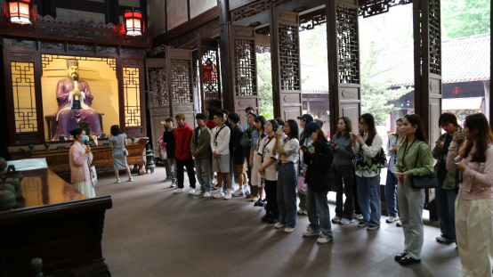 “蜀中胜迹百亩园,钟灵毓秀三苏祠。这就是唐宋八大家中“三苏”苏洵、苏轼、苏辙的故居...”在讲解员的带领下,师生们走进三苏祠,感受苏祠风物,认真聆听三苏父子生平事迹、三苏祠的历史沿革和东坡文化研究传承。大家边走、边看、边思考,深入领略“读书正业、慈孝仁爱、非义不取、为政清廉”的三苏家训家风,细细品读“三苏”经典,从字里行间体悟其中的家国情怀、治国理政思想、廉政为民的品德。