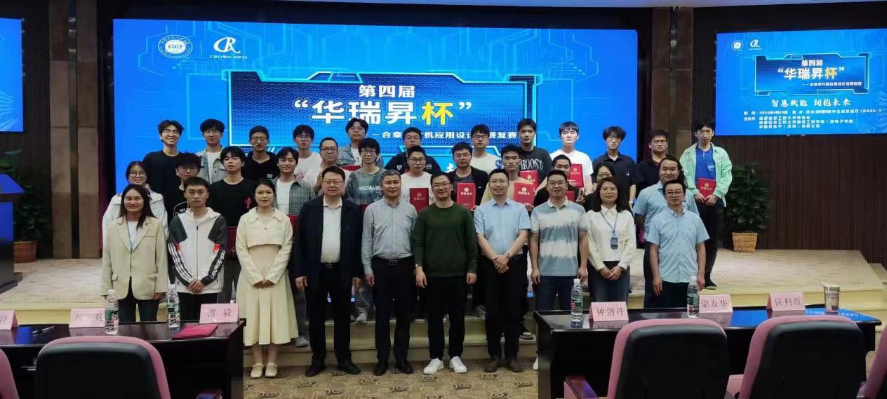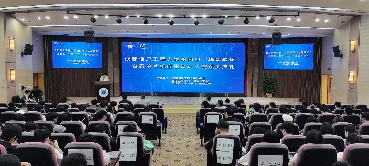 4月20日下午,竞赛颁奖典礼在学校航空港校区国际会议厅举行。通信工程学院(微电子学院)院长李英祥教授、华瑞昇电子(深圳)股份有限公司成都分公司总经理徐兵先生、通信工程学院(微电子学院)钟剑丹老师、华瑞昇电子(深圳)有限公司成都分公司高级工程师梁友华等参加了颁奖典礼。