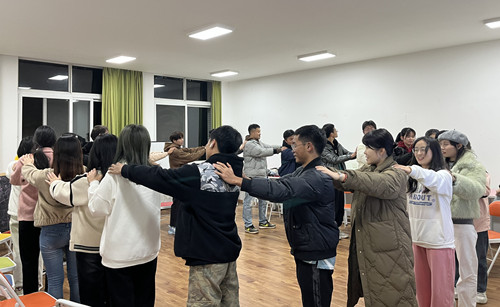 接下来,同学们通过“解手链”的游戏,培养了良好的团队合作能力和意识。在游戏中,同学们自由组队,相互配合,解开复杂的手链。这个游戏不仅锻炼了同学们的团队协作能力,也让在场的同学明白了各族同学会像石榴籽一样紧紧相依。