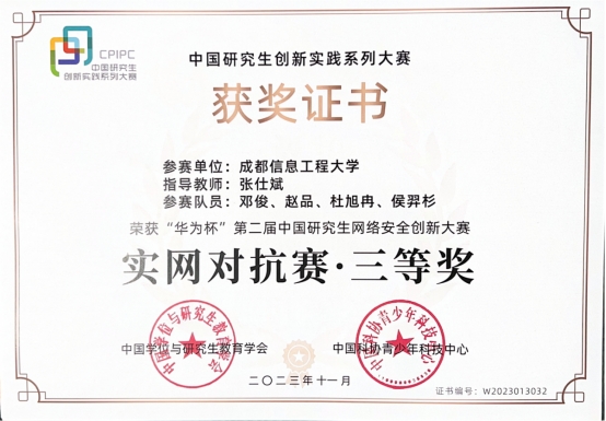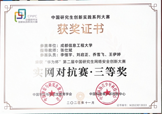 【本网讯】筑牢网络安全防线,共绘网络强国蓝图。2023年11月,“华为杯”第二届中国研究生网络安全创新大赛决赛在杭州正式开赛。大赛由教育部学位管理与研究生教育司指导,中国学位与研究生教育学会、中国科协青少年科技中心主办,以“守卫网络安全,培育网安人才”为主题的比赛。吸引了来自全国153所高校和科研院所的670支队伍、2276名研究生报名参赛。