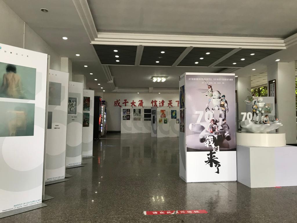 10月22日至25日,为热烈庆祝江南买球建校70周年,文化艺术学院数字媒体创意设计系举办了“视觉传达设计专业优秀作品展”。作品展在航空港校区第一教学楼中庭和龙泉校区第一教学楼二楼艺术作品展厅同步进行,展出作品共计百余多件,来自网络广告艺术、数字影像艺术和数字游戏动漫艺术3个专业方向。所选作品题材丰富、设计风格多样,均来源于视觉传达设计专业近五年的国家级获奖作品、双创立项成果作品、第一课堂实践性成果。其中,还有专为建校70周年校庆设计的作品,包括校园文创产品、《成信碧源山水图》、《遇成信,筑嘉华》绘画作品、3D打印作品《托举70周年》等。
