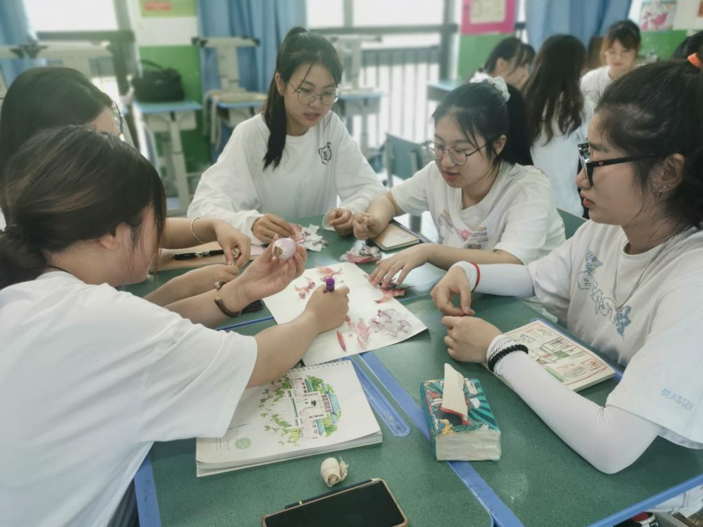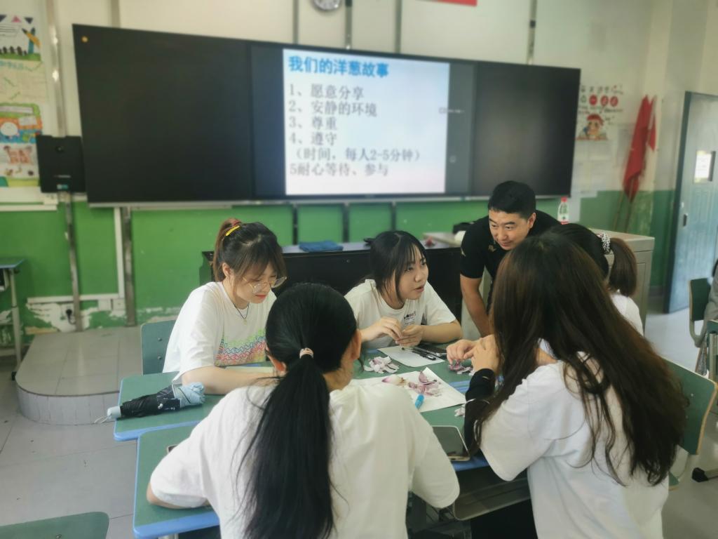 苏成刚老师带领现场各小组成员共同合作、齐心协力,完成“洋葱”创意作品。他引导大家将洋葱作为创作素材进行艺术创作,在创作结束后由小组成员分享各组作品,并讲述作品含义。讲座现场,师生参与度高,氛围十分和谐。他告诉同学们:生活中的大部分人都缺乏挖掘自己的时间,所以要学会通过倾诉感受自己内心,要学会发现周围的小确幸,将内心深处的动力转化为能改变世界的力量。