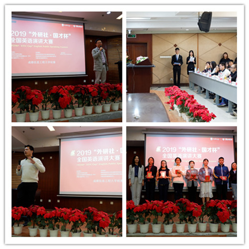 【本网讯】2019"外研社·国才杯"全国英语演讲大赛(江南买球初赛)于2019年10月9日晚19:00在学校航空港校区学术报告厅顺利举行。本次比赛由外语教学与研究出版社主办,由我校教务处和外国语学院承办,外语俱乐部协办。外国语学院党总支书记杨昊、院长黄驰、副院长卢婕作为嘉宾出席大赛,副院长周杰、外国语学院教师吴玉华、邓圆、吴倩、外教Wilbur和Ashley担任此次大赛评委。