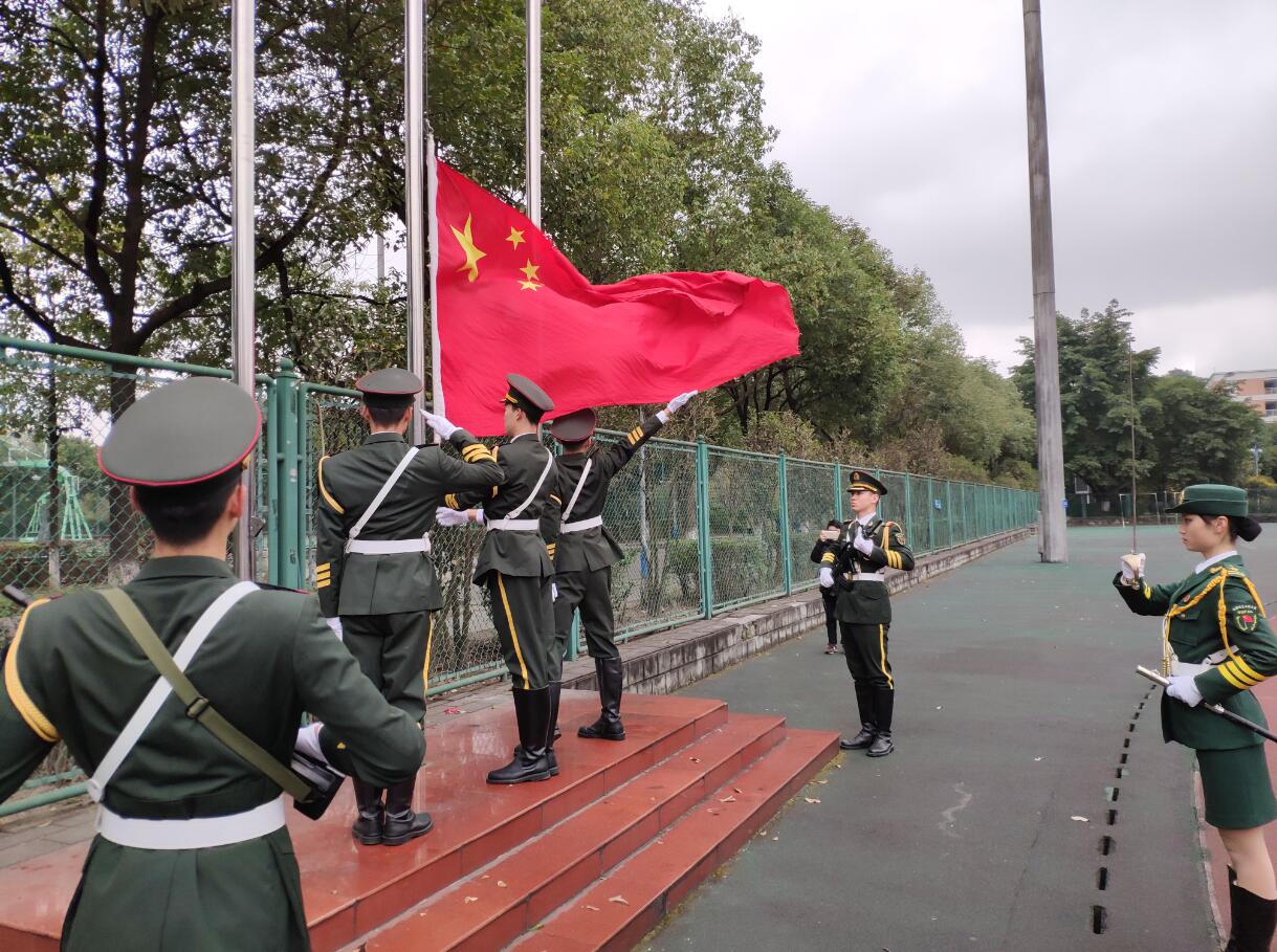上午8时,伴着国旗护卫队整齐有序、铿锵有劲的步伐声,升旗仪式正式开始。在全体师生的庄严注目下,在慷慨激昂的国歌声中,五星红旗承载着历史的风潮和时代新青年的憧憬期愿冉冉升起。学生代表孙安琪作国旗下的演讲,他号召全校青年学子勇担新使命、建功新时代,并向祖国做出庄严承诺:“我们胸怀理想,只为祖国繁荣富强;我们志存高远,只为人民幸福安康;我们脚踏实地,愿为强国大业勤奋读书;我们接力奋斗,终将实现中华民族伟大复兴!”