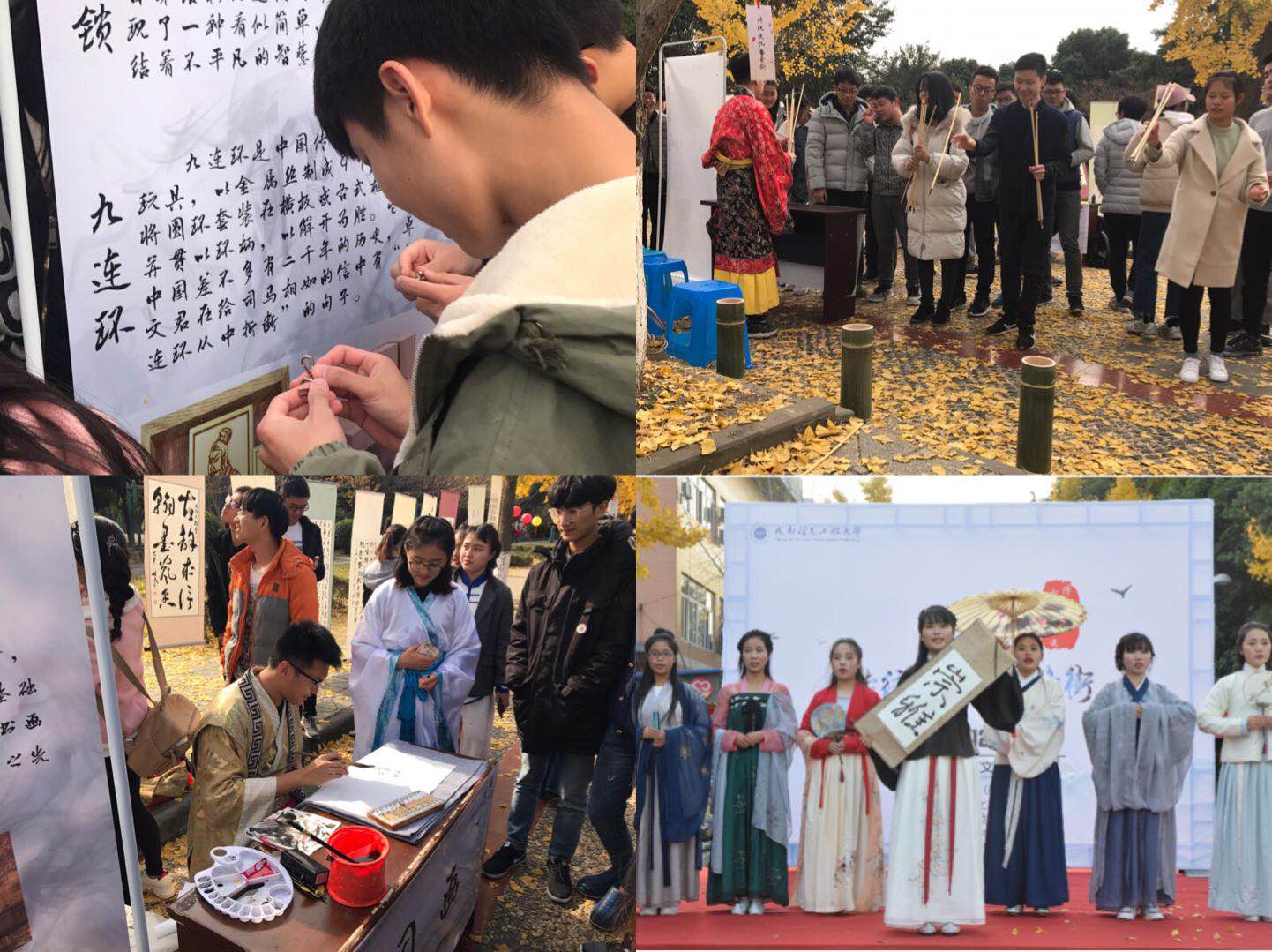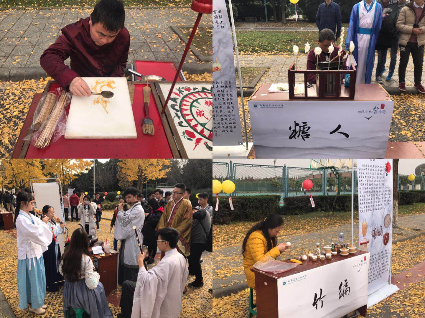 本次活动以“弘扬传统文化,领悟非遗之美”为主题,共聚集了21件传统文化项目,活动在艺术家们的舞狮表演中拉开序幕,舞台上狮子表现着喜、怒、哀、乐、动、静、惊等各种神态,辗转腾挪,欢腾跳跃;川剧变脸表演紧张的节奏与面部的快速变化把现场气氛推向了高潮;木偶戏表演如水墨丹青的纵横之笔,长歌当哭、长袖善舞,“无画处皆成妙境”,写意的舞台简约空灵;刚柔并济的武术表演中他们静若伏虎,动若飞龙,缓若游云,疾若闪电,观众们的欢呼声、掌声此起彼伏。在精彩的表演后,传统文化长廊上车水马龙,长廊分为体验区和互动区,体验区中的传统乐器:古筝、琵琶、二胡、长笛引人入胜;精美的剪纸、蜀锦、竹编等非遗文化作品充分展示了艺术家们的灵心巧手;雄健洒脱的书法、精美绝伦的绘画、可观可食的糖画与糖人都吸引着同学们驻足观看。互动区的踢毽子、投壶、成语接龙、诸葛帽、鲁班锁、猜灯谜等游戏更是让现场的同学们加深了对传统文化的认识。最后,本次活动在学生崇雅汉社的古风舞蹈和美丽汉服展示中落下帷幕。