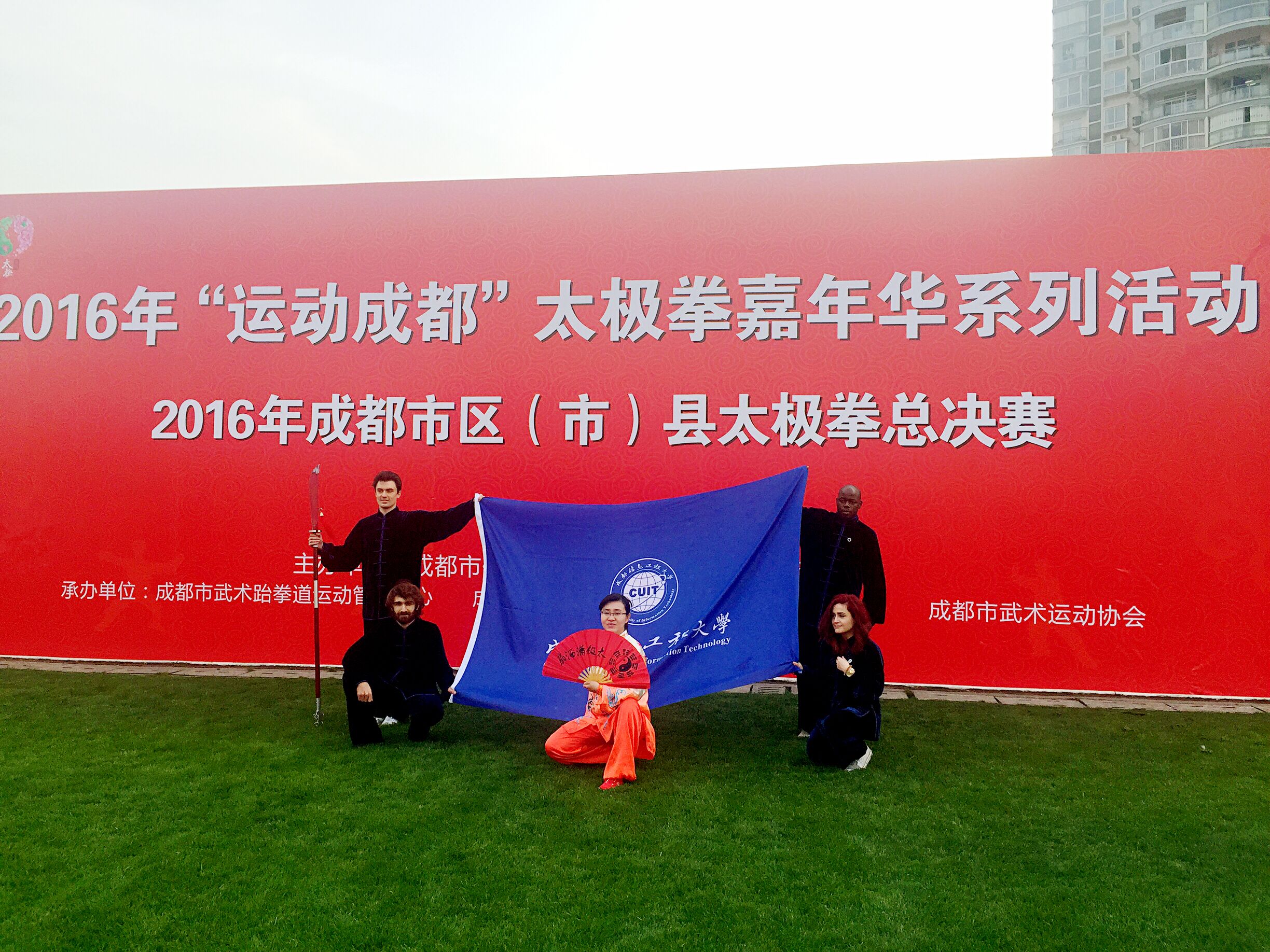 【本网讯】11月27日,由成都市体育局、金牛区人民政府主办的2016年“运动成都”太极拳嘉年华系列活动在成都金牛体育中心成功举办。在体育部胡芳老师的悉心指导下,我校留学生及外教代表参加了2016年成都市区(市)县太极拳总决赛。其中,留学生Desbraux和Aaron精彩的太极武术表演获得了9.25的最高分,荣获该项比赛第一名。