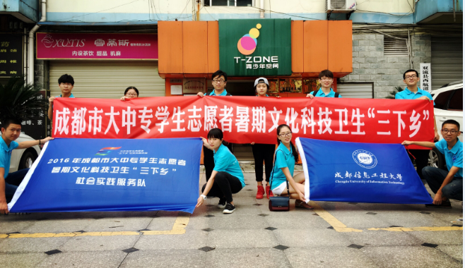 【本网讯】按照中宣部、中央文明办、教育部、共青团中央、全国学联等联合部署,全国各大中专院校紧紧围绕学习宣传贯彻习近平总书记系列重要讲话精神,以“践行‘八字真经’投身‘四个全面’”为主题,开展了全国大中专学生志愿者暑期“三下乡”社会实践活动。7月6日下午,我校“三下乡”社会实践活动团队参加了由市委宣传部、市文明办、市教育局、团市委、市学联主办,成都大学团委、成都大学学生会承办的2016年成都市大中专学生志愿者暑期文化科技卫生“三下乡”社会实践活动出征仪式。