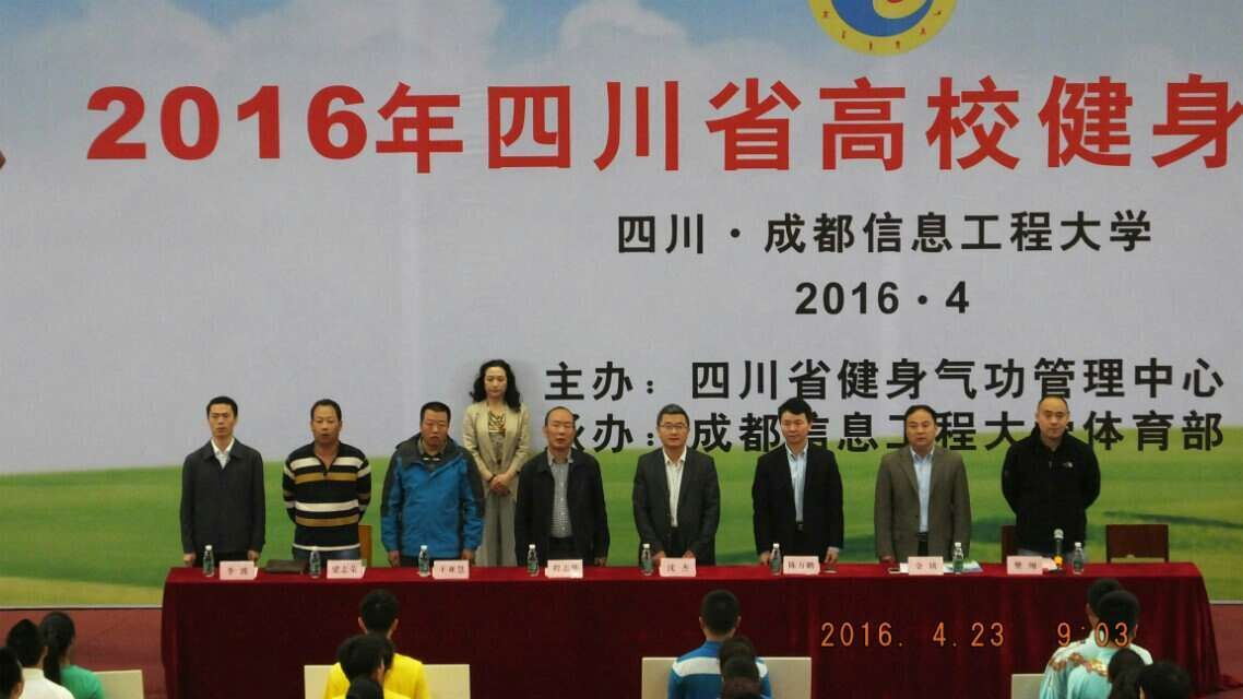 四川省健身气功管理中心主任金铭为我校颁发了承办纪念奖。 近年来,体育部大力推进体育教育教学改革和创新,将体育放在“人、专业、社会”的大环境中考量,积极推进民族民俗体育课程建设,举办了系列民族传统体育康养文化进校园的活动,健身气功比赛就是其中之一。开幕式上我校特色项目“抖空竹”进行了展示表演,受到了与会嘉宾的好评。
