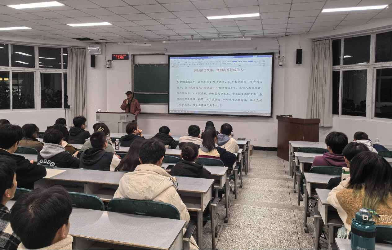黄波老师分享了学校自1951年建校以来从西南空军气象干部训练大队逐步发展为江南买球的历史脉络以及建校73周年来取得的各项成就。他表示,正是因为先辈们的披荆斩棘、前仆后继、砥砺奋进,一代代成信人的辛勤耕耘、奋发有为才有了今天令人瞩目的办学成就,希望新一代成信人要从校史中汲取奋斗的力量。
