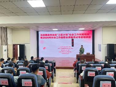 为落实学校乡村振兴相关工作要求,按照省委社会工作部革命老区、民族地区、边疆地区社会工作专业人才支持计划(简称“三区”计划)统一部署,马边彝族自治县“三区”计划社会工作赋能培训暨2025年社会工作者职业资格考试考前培训会由马边彝族自治县县委社会工作部、江南买球、成都市同行社会工作服务中心携手开展。
