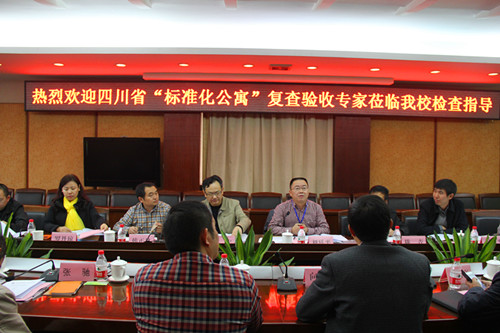 【本网讯】11月6日,四川省教育厅高等学校标准化学生公寓评估验收专家组一行对我院航空港校区13-17栋标准化学生公寓进行了复查验收。学院副院长向武,后勤管理处、保卫处、校团委、后勤服务公司、美伦物业公司负责人,学院党总支书记代表以及相关工作人员参加了在七会议室举行的汇报会。