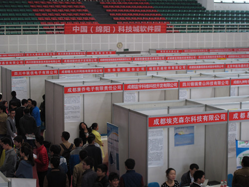 【本网讯】四川省首次信息产业企业大型招聘会于2015年3月19日上午在我院航空港校区体育馆隆重召开。招聘会由四川省软件行业协会、成都市软件行业协会、中国(绵阳)科技城软件园、成都信息工程学院共同主办的招聘片区,以及由成都高新技术产业开发区管理委员会主办、成都高新区经贸发展局、成都天府软件园有限公司、成都信息工程学院承办的天府人才行动2015春季校园招聘片区组成,汇集了180家国内外知名信息产业企业参会,为本地各高校的毕业生提供了三千余个针对性强、就业质量高的职位,不仅吸引了大量2015届毕业生参会应聘,也吸引了不少非毕业班的在校学生到场了解地方信息产业的发展和对人才的需求情况。