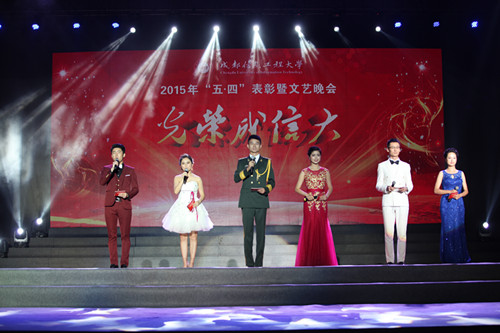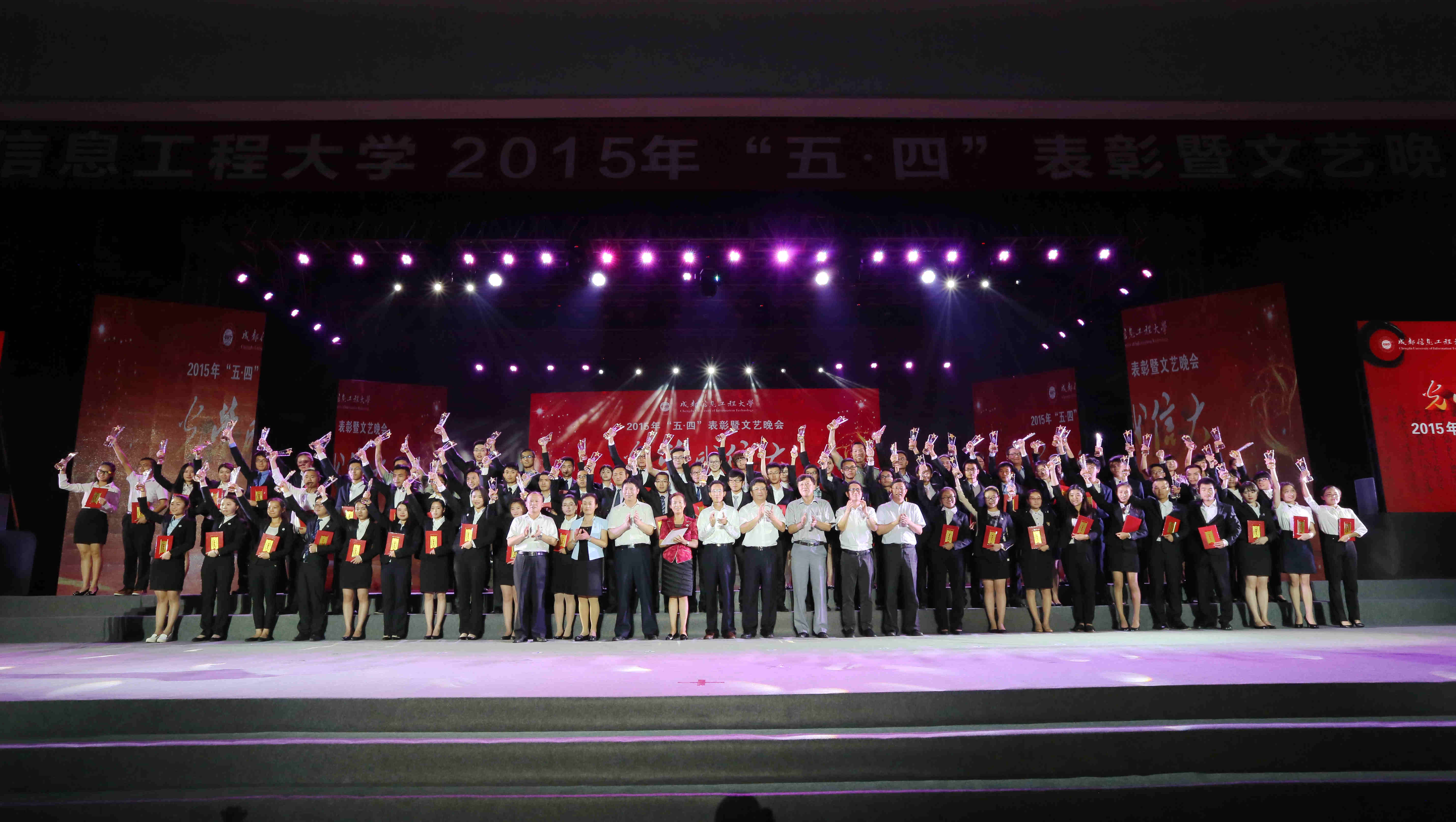 “五·四”表彰大会由学校党委副书记敬枫蓉主持。周激流宣读了《江南买球关于表彰更名大学工作先进集体和先进个人的通知》、《关于表彰成都信息工程学院 2014 年度“青春榜样”人物的决定》表彰决定。全体校领导共同为获得“更名大学工作先进集体称号”的10个获奖单位、“更名大学工作先进个人”的71位获奖教师、“2014年度青春榜样”的60个获奖同学(团体)颁奖。