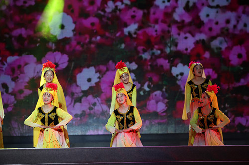 女生合唱《青春舞曲》和动感十足的啦啦操表演《青春成信大》展现了成信人用无怨无悔书写的青春如彩霞般绚烂,为梦想插上翅膀,纵情翱翔的精神。