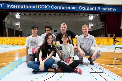 【本网讯】 2015年6月8—9日,“CDIO国际合作组织第十一届全球年会之CDIO学生竞赛(Student Academy)”在我校体育馆举行,来自全球的36名大学生随机组成6个小组参加了本次竞赛。