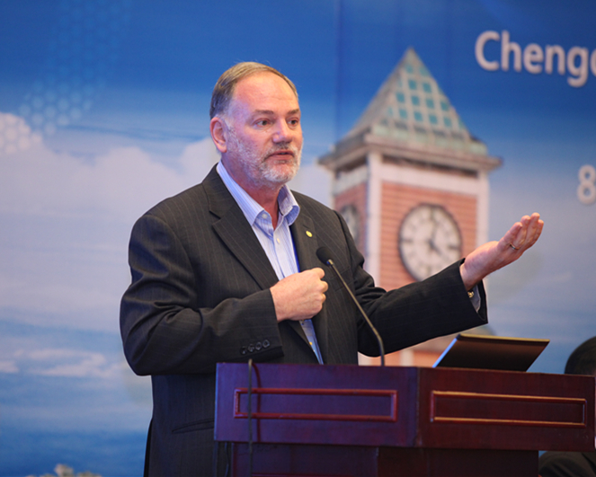 Ron Hugo作了《CDIO、OBE a nd Engineering Accreditation》的发言。他详细介绍了国际工程教育联盟组织以及《华盛顿条约》的发展历程,同时向参会人员详细阐述了加拿大工程专业认证的六个步骤以及以成果为导向性的课程建设。