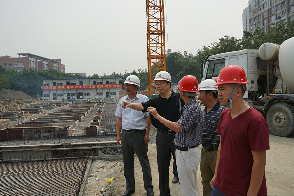 【本网讯】6月10日上午,学校校长周激流在副校长向武的陪同下,百忙之中抽出宝贵时间视察了在建学生公寓施工现场。