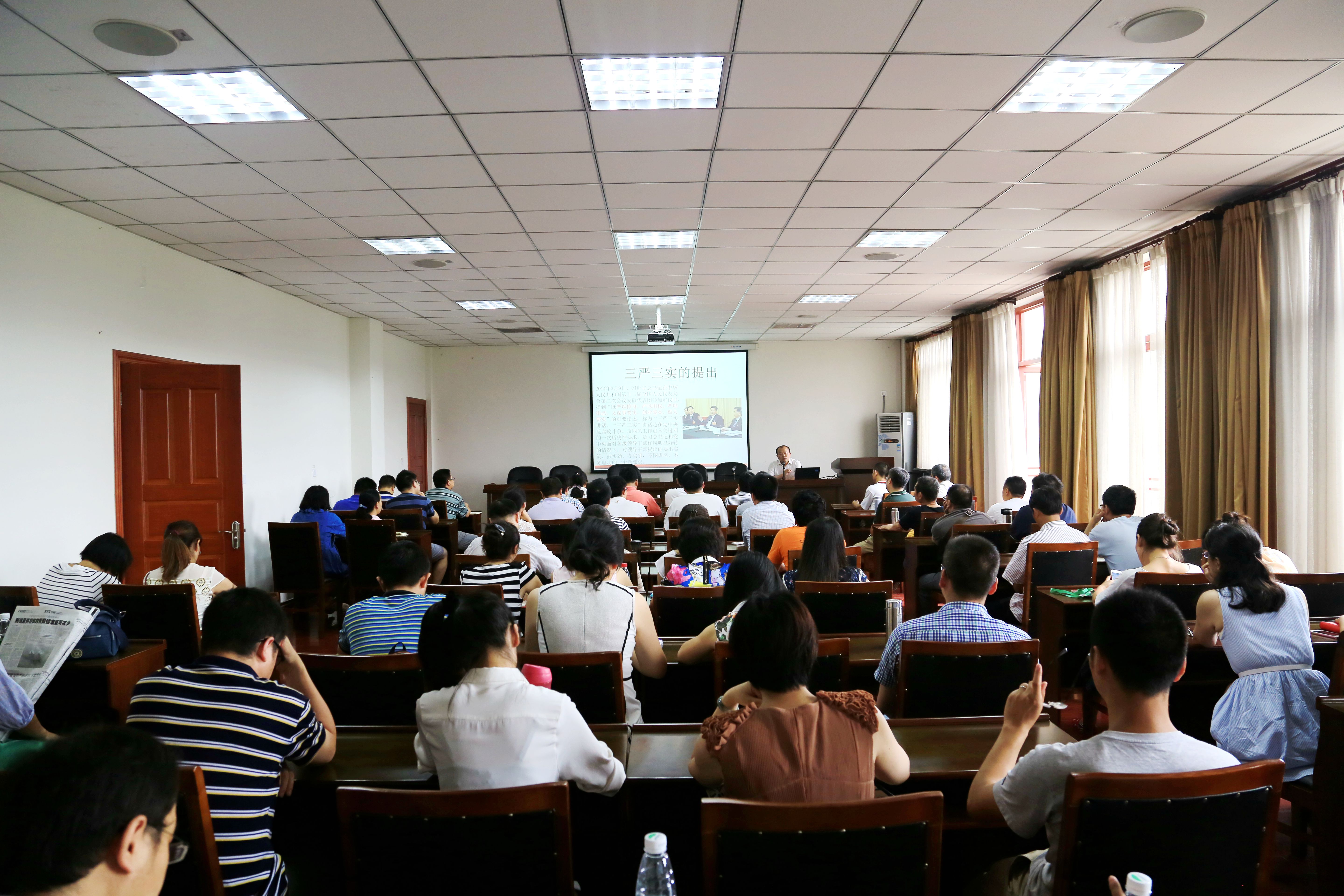 何建新从党的十八大报告提出“两个一百年”奋斗目标和实现中华民族伟大复兴的中国梦的长期目标,国家围绕这些目标进行了全面深化改革,并从中国经济发展和调结构、稳增长的大背景讲起,联系高校教学管理工作实际,结合自身学习体会,特别是高等教育教学改革,详细解读了“三严三实”提出的背景,必要性、重要性。他最后对老师们在本职工作中践行“三严三实”提出了要求。他要求大家要站好三尺讲台,做好本职工作,在三尺讲台上、在日常管理中站好岗,发挥先锋带头作用,为人才培养做出贡献;以“三严三实”严格约束和规范自己的言行,把社会主义核心价值观教育贯穿到育人的全过程,不断创新课堂内容和形式,讲好国家大事,帮助青年学生客观地、理性地认识社会;要关注学校工作,科学创新,提高科研和教学质量,为建设高水平的信息工程大学贡献出自己的力量。