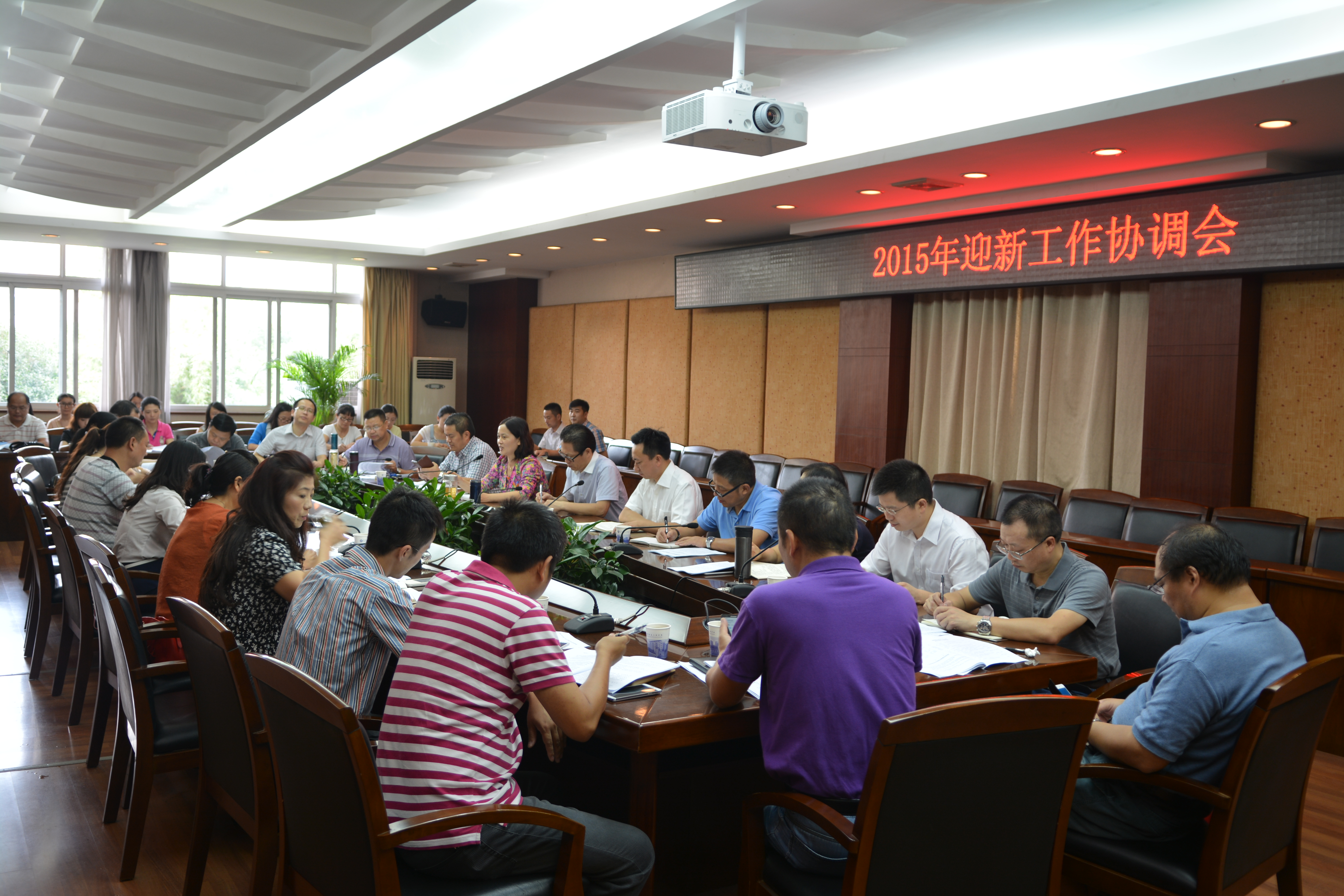 【本网讯】9月7日上午,学校在行政楼第七会议室召开2015年迎新工作协调会。学校副校长于世祥,驻校选培办、党政办公室、组织人事处、宣传统战部、教务处、研究生处、学生工作处、招生就业处、保卫处、计划财务处、后勤管理处、信息中心、校团委、图书馆及后勤服务公司等部门负责人,各学院党总支书记或副书记,各学院新生辅导员,学生工作处相关人员参加了会议。会议由于世祥主持。