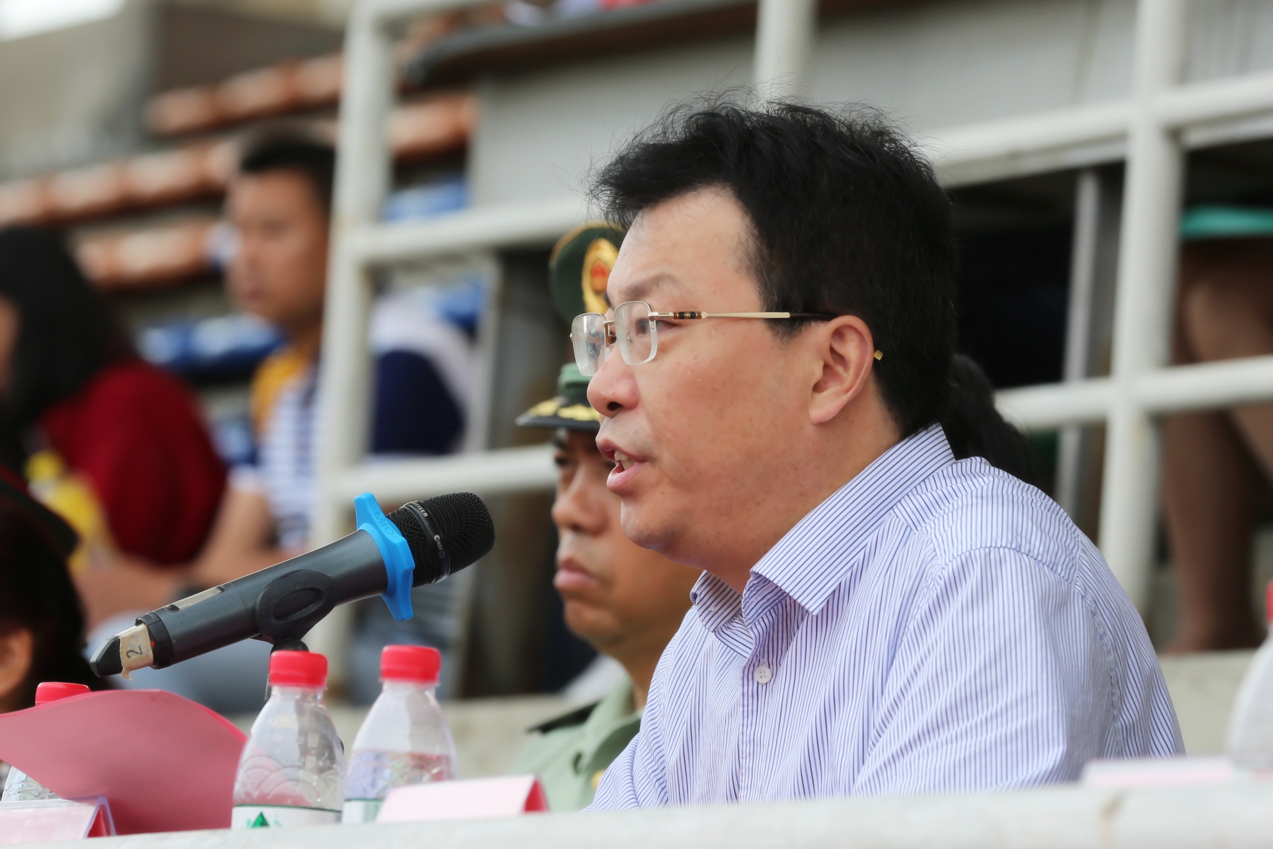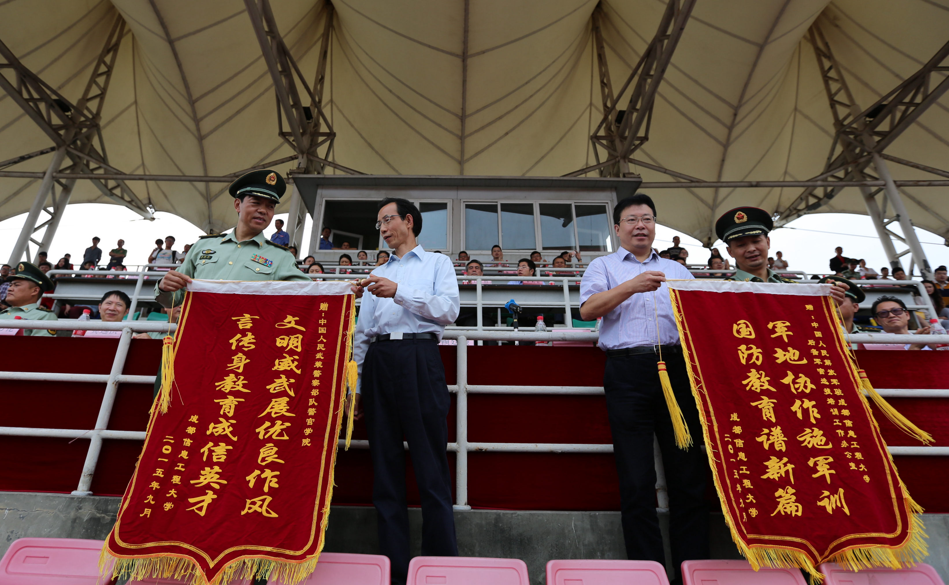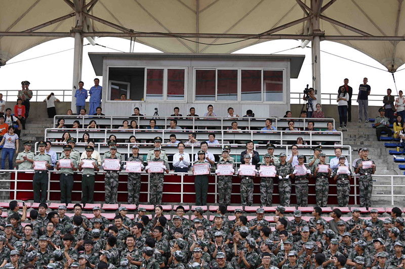 武警警官学院军训团副团长李伟少校和军训团营长赵守清中尉宣读了此次军训获奖名单,武警警官学院领导、四川省军区军训办领导和学校领导为获奖单位和个人颁奖。赖廷谦、周激流向承训方武警警官学院、驻校选培办赠送锦旗,并感谢武警警官学院对这次军训圆满完成所作出的重要贡献,感谢驻校选培办的大力支持。