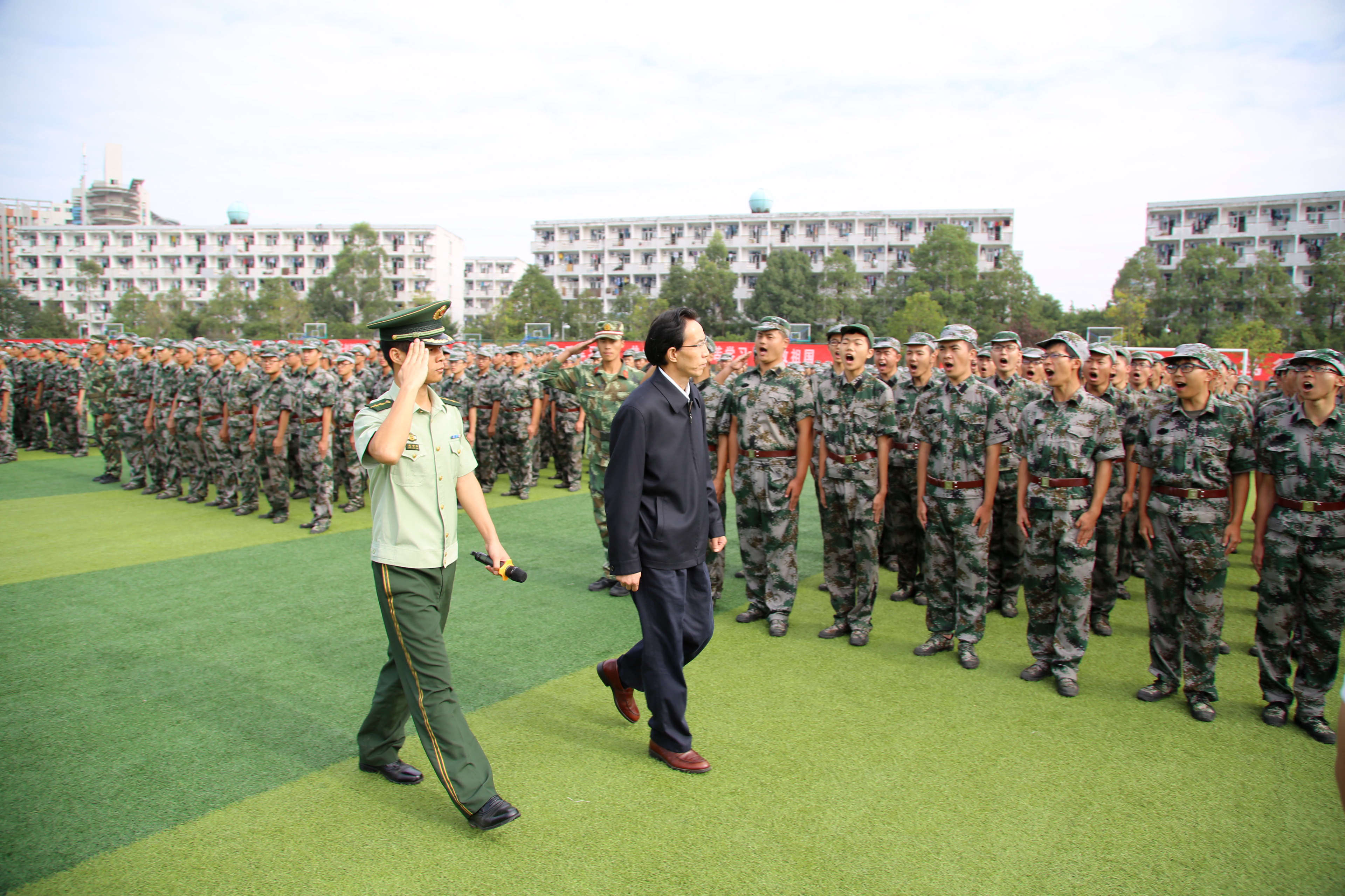 赖廷谦检阅新生军训方阵