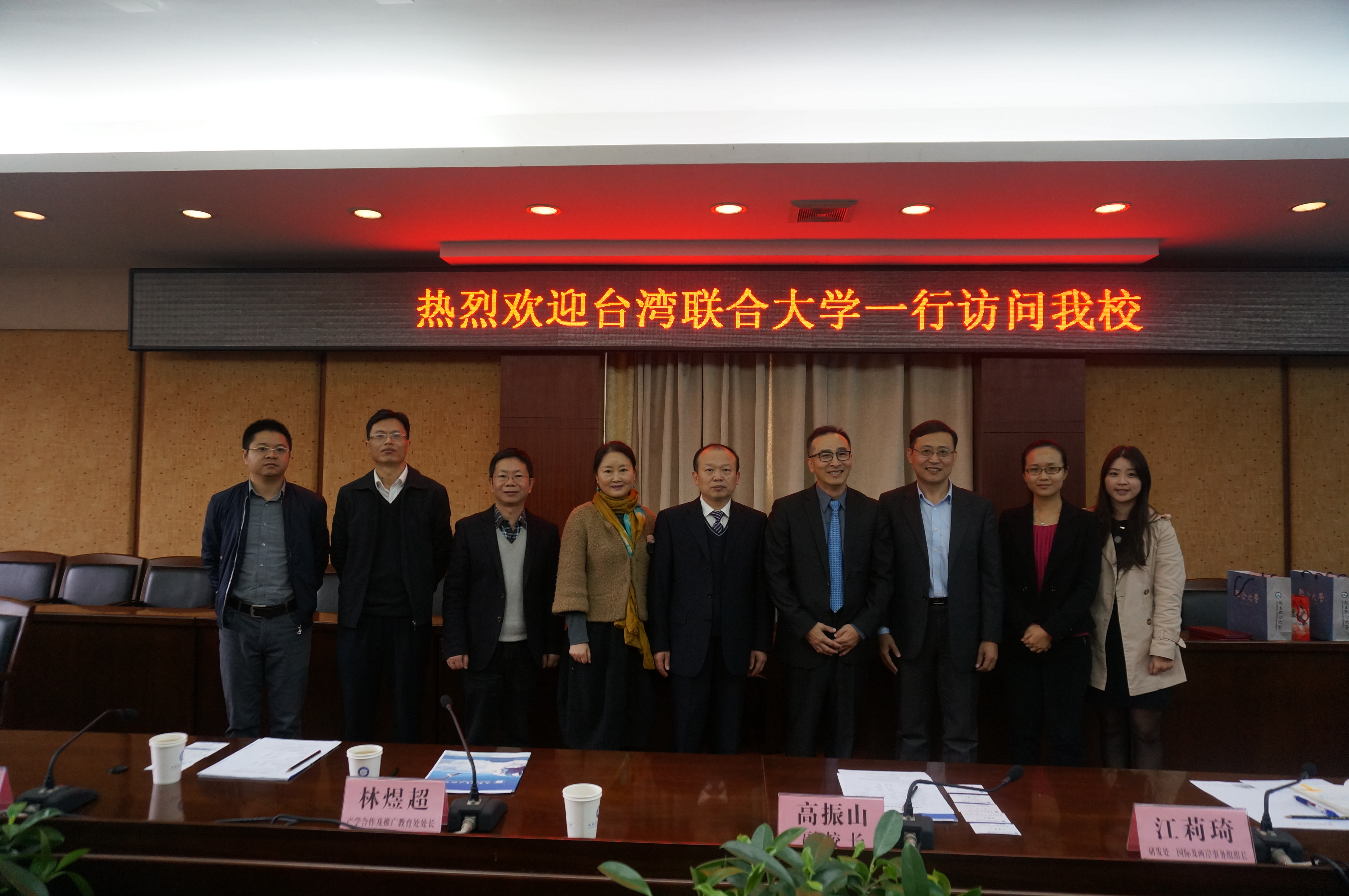 【本网讯】11月17日上午,台湾联合大学副校长高振山、产学合作及推广教育处处长林煜超、研发处国际及两岸事务组组长江莉琦、行政助理陈郁玲一行4人到访我校。我校副校长何建新,国际交流与合作处处长段黔冰、科技处处长董一平、校地合作处处长陈麟、教务处副处长何晋等参加了交流座谈会议。