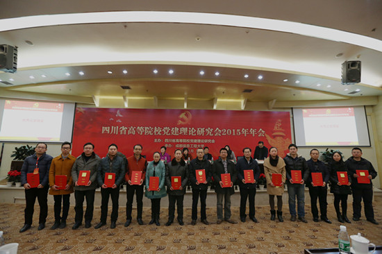 【本网讯】1月8日,四川省高等院校党建理论研究会2015年年会在我校召开。省委教育工委副书记、省教育厅党组成员刘晓晨,省社会科学界联合会学会学术部调研员许强,省委宣传部宣传(教育)处副处长陈小海,省委组织部组织三处副调研员赵争真,四川省高等院校党建理论研究会副会长兼秘书长、四川大学党委常务副书记罗中枢,电子科技大学党委副书记、纪委书记罗佳慧,我校党委书记赖廷谦出席会议。我校党委副书记敬枫蓉、倪鸣,省委教育工委、省教育厅组织干部处处长丁念友,各高校常务理事、理事以及从事高校党建工作的同志,我校相关职能部门负责人和各学院党总支书记、副书记共计110余人参加了会议。