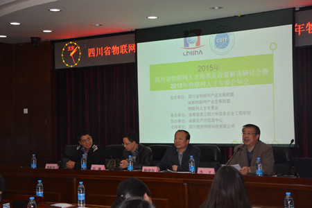 【本网讯】3月30日下午,四川省物联网人才培养及政策解读研讨会暨2015年物联网人才专委会年会在我校召开。学校副校长何建新,四川省物联网产业发展联盟秘书长李俊华、物联网人才专委会秘书长彭舰、成都生产力促进中心技术交流部刘艳梅,以及来自四川大学、电子科技大学、西南交通大学等20多所高校代表,中国惠普软件教育、盈创动力投资发展有限公司、NEXT创业空间、四川飞阳科技有限公司、成都安可信电子股份有限公司等30多家企业代表参加了会议。会议由信息安全工程学院院长李飞主持。