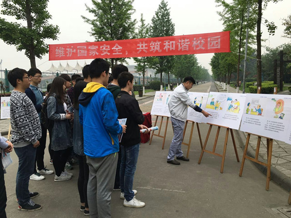 为了全面提升学生的国家安全意识,保卫处以《中华人民共和国国家安全法》《中华人民共和国反间谍法》为主要内容,面向师生开展国家安全宣传图片展,并由专职老师逐一讲解;设置国家安全宣传台,向全校师生发放《国家安全警示报特刊》五千余份;充分运用网络、新媒体等及时宣传、报道活动开展情况,营造良好的学习宣传氛围。