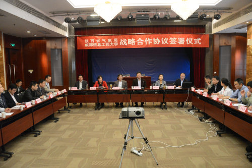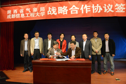 陕西省气象局局办公室、人事处、观测处、预报处、信息中心、大气探测中心、气象服务中心、学校党政办公室、科技处、大气科学学院、电子工程学院、资源环境学院和软件工程学院相关人员参加了签约仪式。