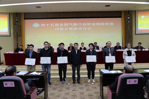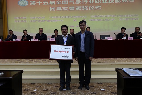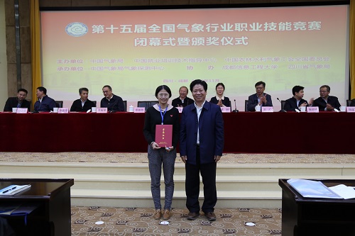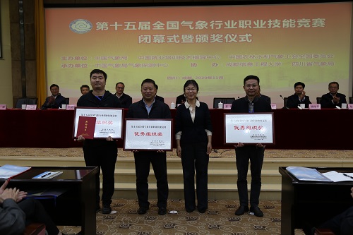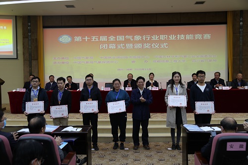 【本网讯】11月19日上午,经过两天激烈角逐,第十五届全国气象行业职业技能竞赛暨第四届全国气象行业县级综合气象业务职业技能竞赛在我校落下帷幕。中国气象局副局长于新文、中国农林水利气象工会全国委员会主席蔡毅德、中国气象局综合观测司副司长裴翀、四川省气象局党组书记彭广、我校校长余敏明等出席闭幕式。闭幕式由中国气象局综合观测司副司长田浩主持。