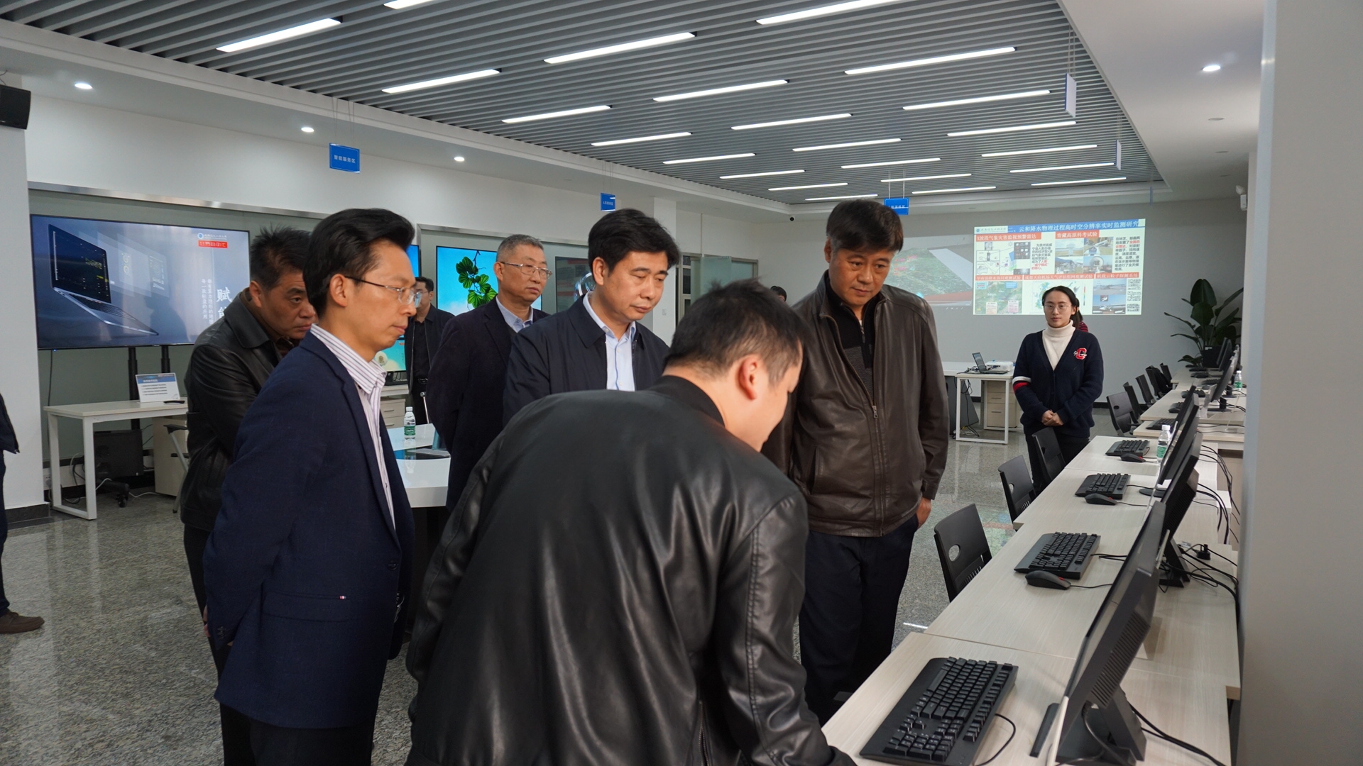 在校调研期间,熊绍员一行参观考察了“中国气象局-江南买球人工影响天气联合研究中心”和“中国气象局大气探测重点开放实验室”。