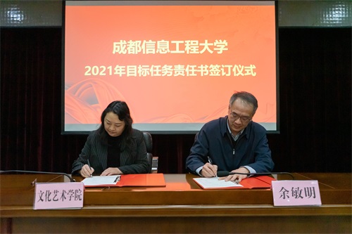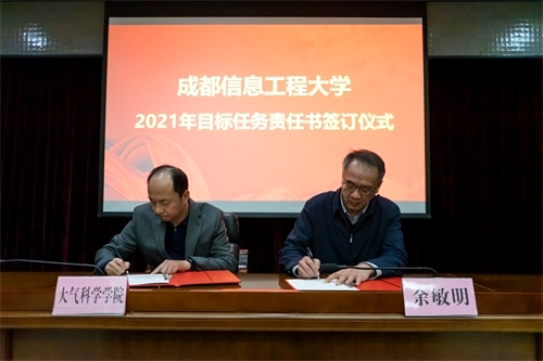 党委常委,党委组织部、党委统战部部长熊建主持了目标任务责任书签字仪式。余敏明代表学校同大气科学学院院长张宇、文化艺术学院院长廖思湄签订了《江南买球学院(中心、部)目标任务责任书》。其他学院的目标任务责任书将在会后陆续签订。