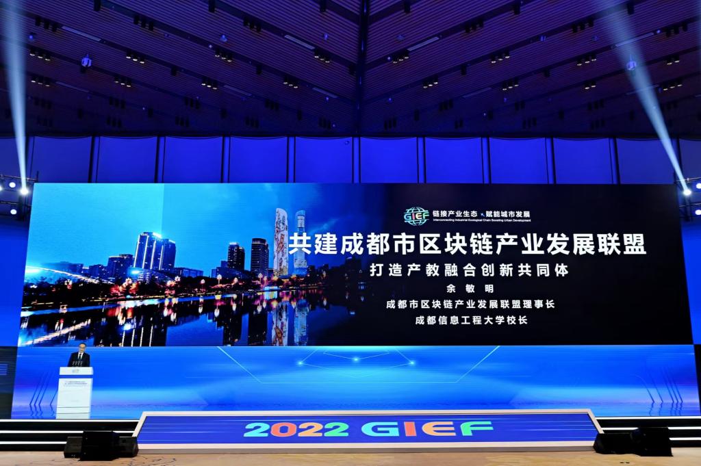 【本网讯】11月21日上午,2022成都全球创新创业交易会——第二届国际区块链创新应用博览会在成都天府国际会议中心隆重开幕,省委常委、市委书记施小琳,省委宣传部副部长、省委网信办主任房方,市委副书记谢瑞武,中国工程院院士、四川大学校长李言荣等领导嘉宾,以及部分协会、机构和企业代表出席开幕式。市委副书记、市长王凤朝出席并致辞。我校校长余敏明受邀出席大会并发言。