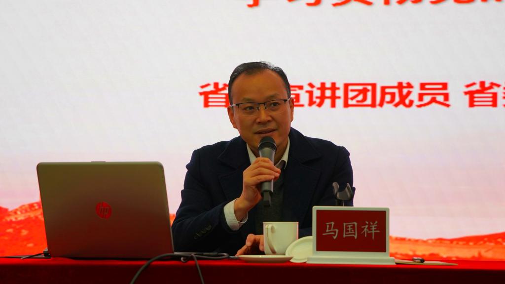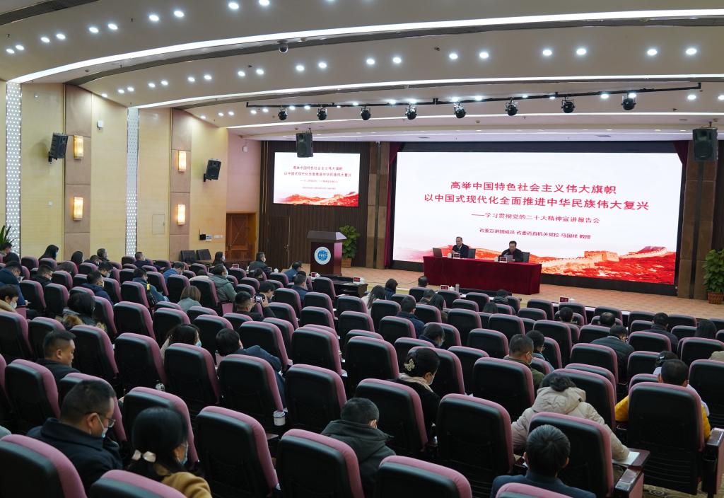 马国祥以《高举中国特色社会主义伟大旗帜,以中国式现代化全面推进中华民族伟大复兴——学习贯彻党的二十大精神》为题进行宣讲。宣讲中,他带领广大干部再次回顾了党的二十大胜利召开的全过程,从“深刻把握党的二十大的主题和主要成果”“深刻把握过去5年的工作和新时代10年的伟大变革”“深刻把握开辟马克思主义中国化时代化新境界的历史责任”“深刻把握以中国式现代化全面推进中华民族伟大复兴的使命任务”“深刻把握全面建设社会主义现代化国家的目标任务”“深刻把握加强党的全面领导和全面从严治党的部署要求”“深刻把握应对风险挑战的重要要求”等七方面对党的二十大精神作了全面阐释和深刻解读,并对“两个确立”的决定性意义和内在逻辑进行了深入系统的阐释。结合学校实际,马国祥希望广大干部全面落实实施科教兴国战略、强化现代化建设人才支撑的部署要求,为建设教育强省、教育强国贡献智慧和力量。