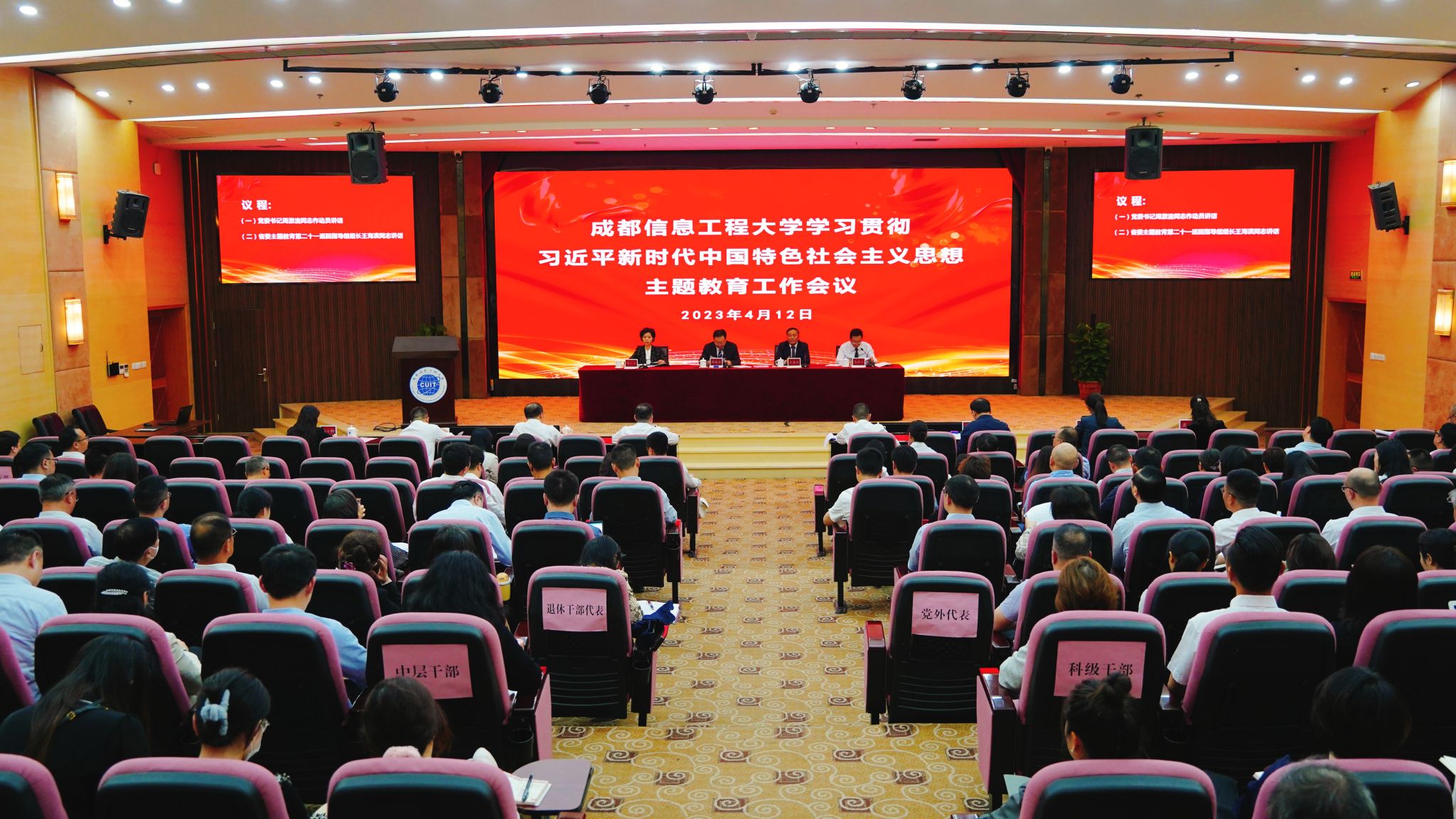 【本网讯】4月12日下午,学校在航空港校区国际会议厅召开学习贯彻习近平新时代中国特色社会主义思想主题教育工作会议,对学校主题教育工作进行安排部署。省委主题教育第二十一巡回指导组组长王海滨、副组长苟小兰,巡回指导组全体成员到会指导,并与学校领导班子成员及老同志代表、基层党组织书记代表等开展个别谈话,听取意见建议。学校党委书记周激流等在校领导班子成员,全体中层以上干部,部分党员科级干部,教授代表、老同志代表、党外人士代表和师生党员参加了会议。
