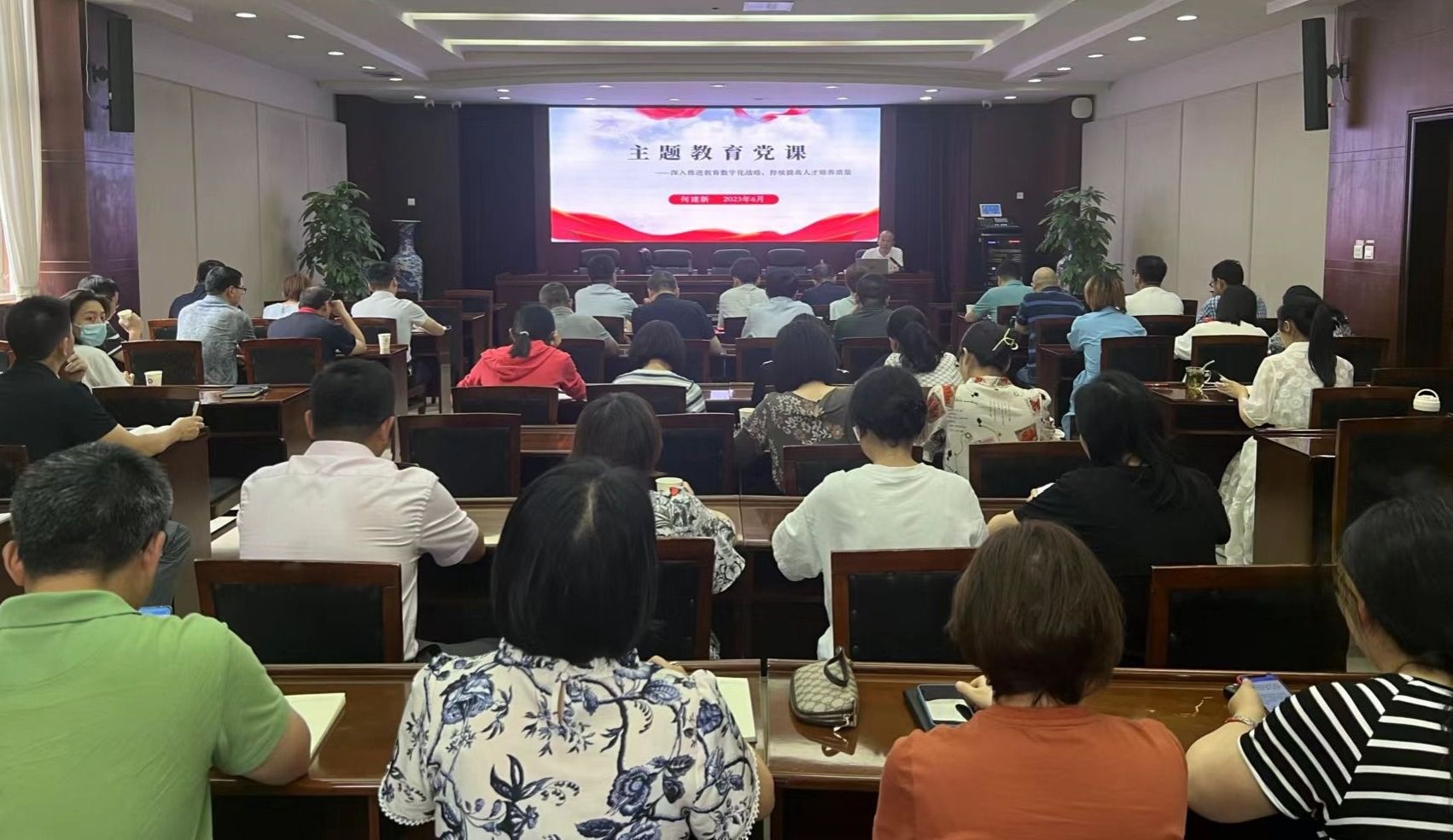 【本网讯】为深入开展学习贯彻习近平新时代中国特色社会主义思想主题教育,6月21日下午,学校校长何建新在航空港校区行政楼一会议室讲授题为《深入推进教育数字化战略,持续提高人才培养质量》的专题党课。学校党委教师工作部、党委学生工作部、科技处、教务处等职能部门和部分二级学院科级以上干部及师生代表到场聆听党课。
