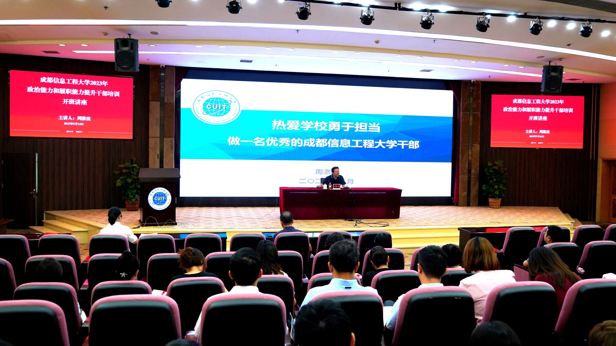【本网讯】9月14日下午,在我校航空港校区国际会议厅,学校党委书记周激流为七十余名新提任中层、科级领导干部做了题为“热爱学校,勇于担当,做一名优秀的江南买球干部”的专题讲座。