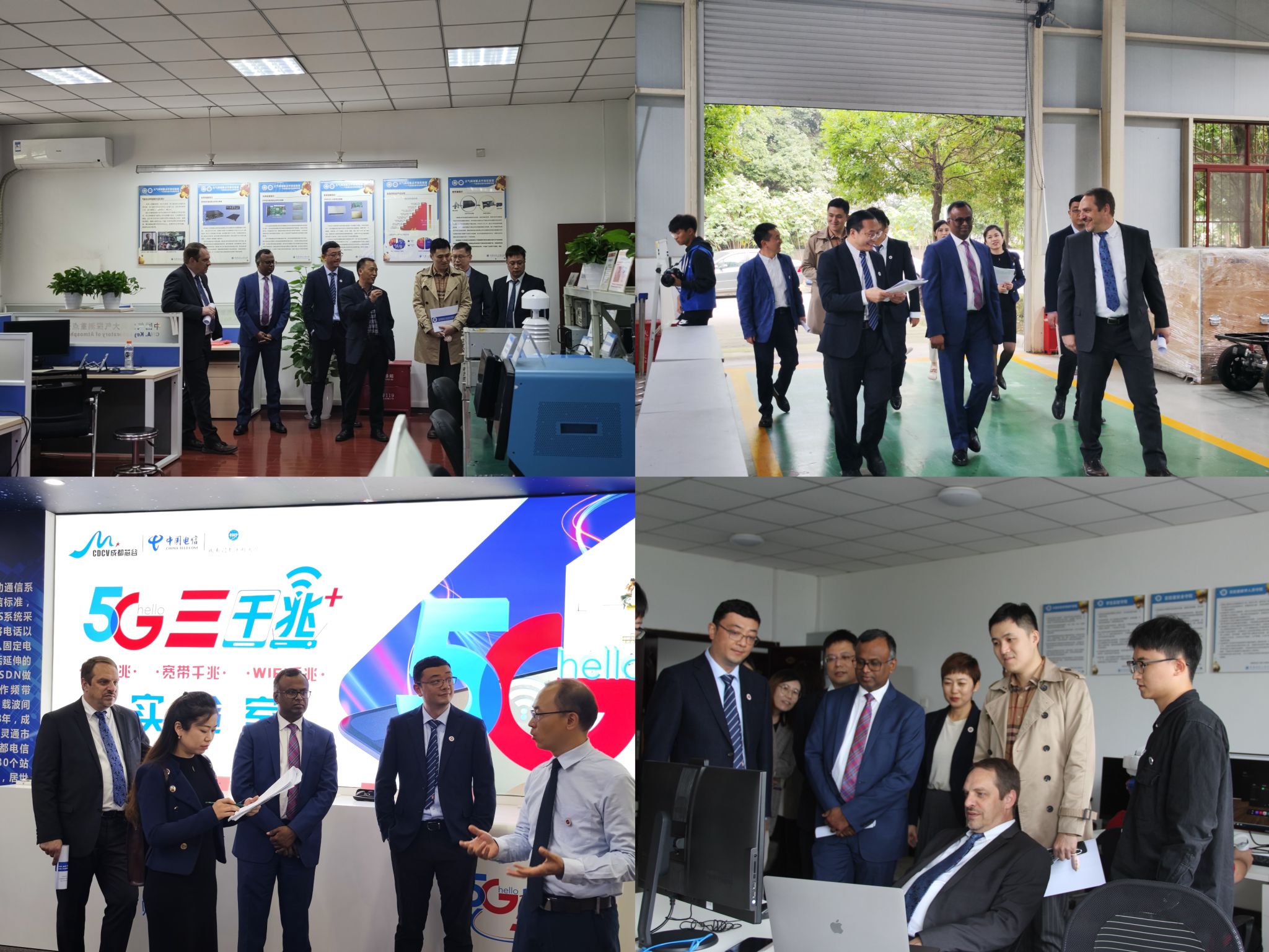 下午,在我校领导的陪同下,来宾参观了计算机学院(数字媒体技术开发实验室、创新开放实验室)、网络空间安全学院(物联网工程实验室)、通信工程学院(5G应用创新实验室)、电子工程学院(气象雷达信号处理研究室)、自动化学院(机械电子及机器人工程教学实验室)等,聆听了学院领导和专业教师的详细报告,表示我校在工程类专业产教融合方面取得的成果令人印象深刻,值得交流与借鉴。