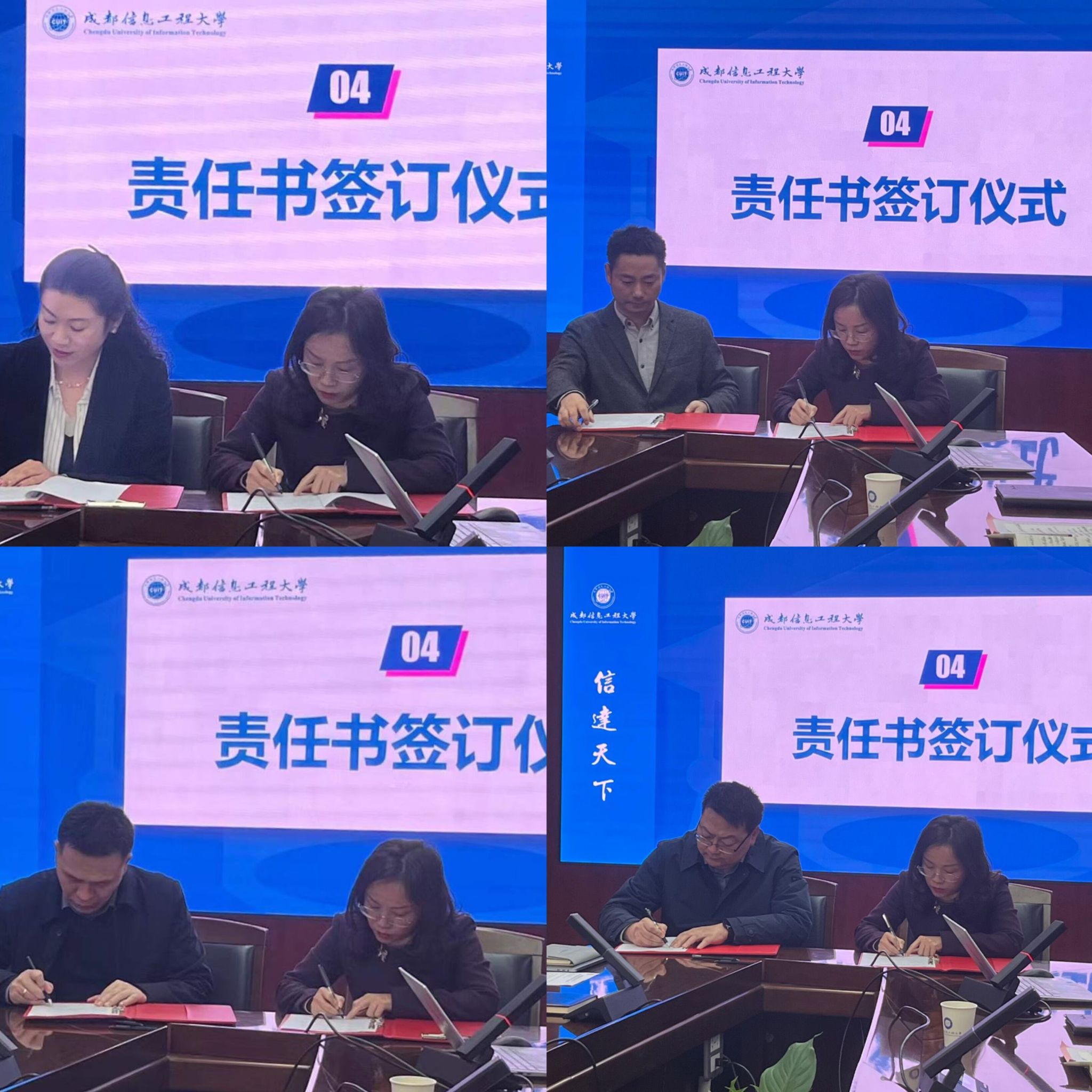 会上,党委保卫部(保卫处)、研究生处以及通信工程学院、资源环境学院分别作为职能部门代表和教学部门代表与学校签订了研招考试考点考务工作责任书。