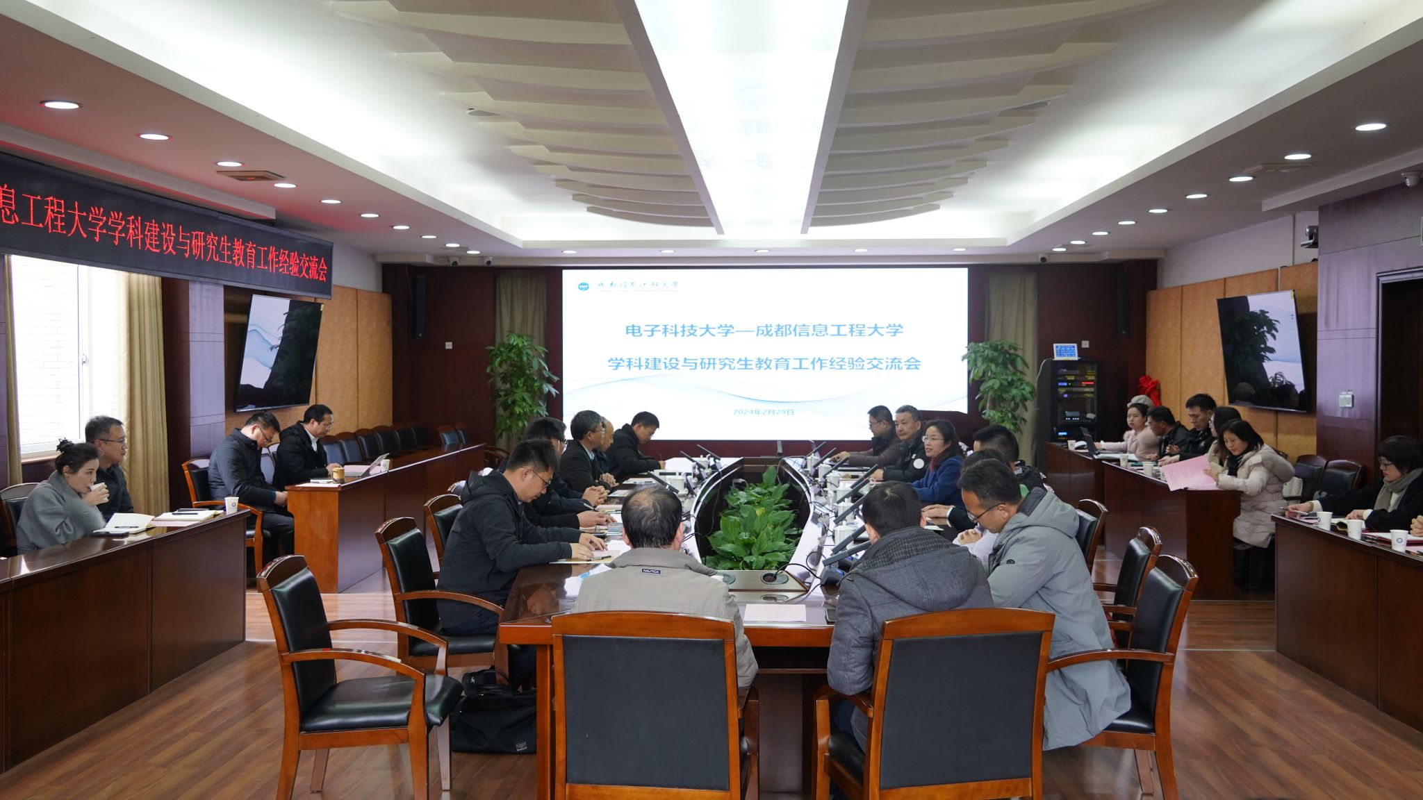 【本网讯】2月29日,电子科技大学副校长胡皓全一行来校就学科建设与研究生教育工作进行经验分享和工作交流。学校党委书记沈火明、副校长陈权亮出席会议。学校副校长罗小蓉主持会议。