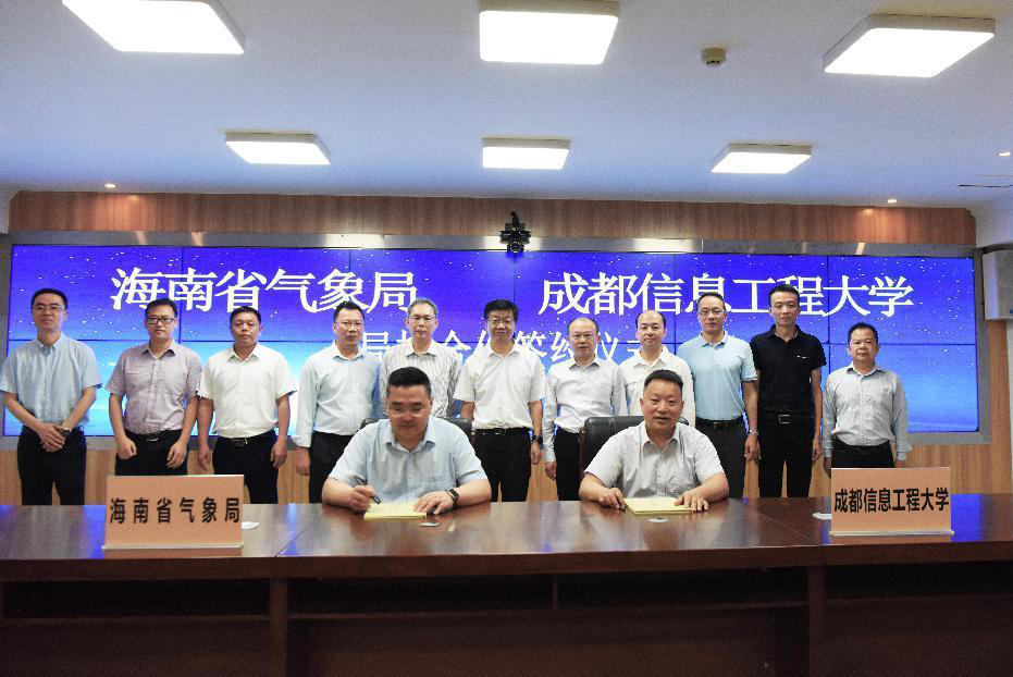 【本网讯】为进一步推进局校合作,4月9日,我校党委副书记、校长何建新,党委常委、副校长舒红平一行到海南省气象局交流座谈。海南省气象局党组书记、局长辛吉武,党组成员、副局长程鸿涛、高荣出席座谈会。高荣、舒红平分别代表双方签署新一轮合作协议,深入推进气象领域教育、科技、人才一体化发展。