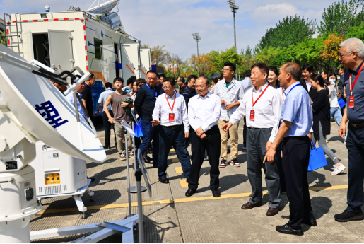 参会领导和专家在人工影响天气技术装备高质量发展建设成果展区参观并交流