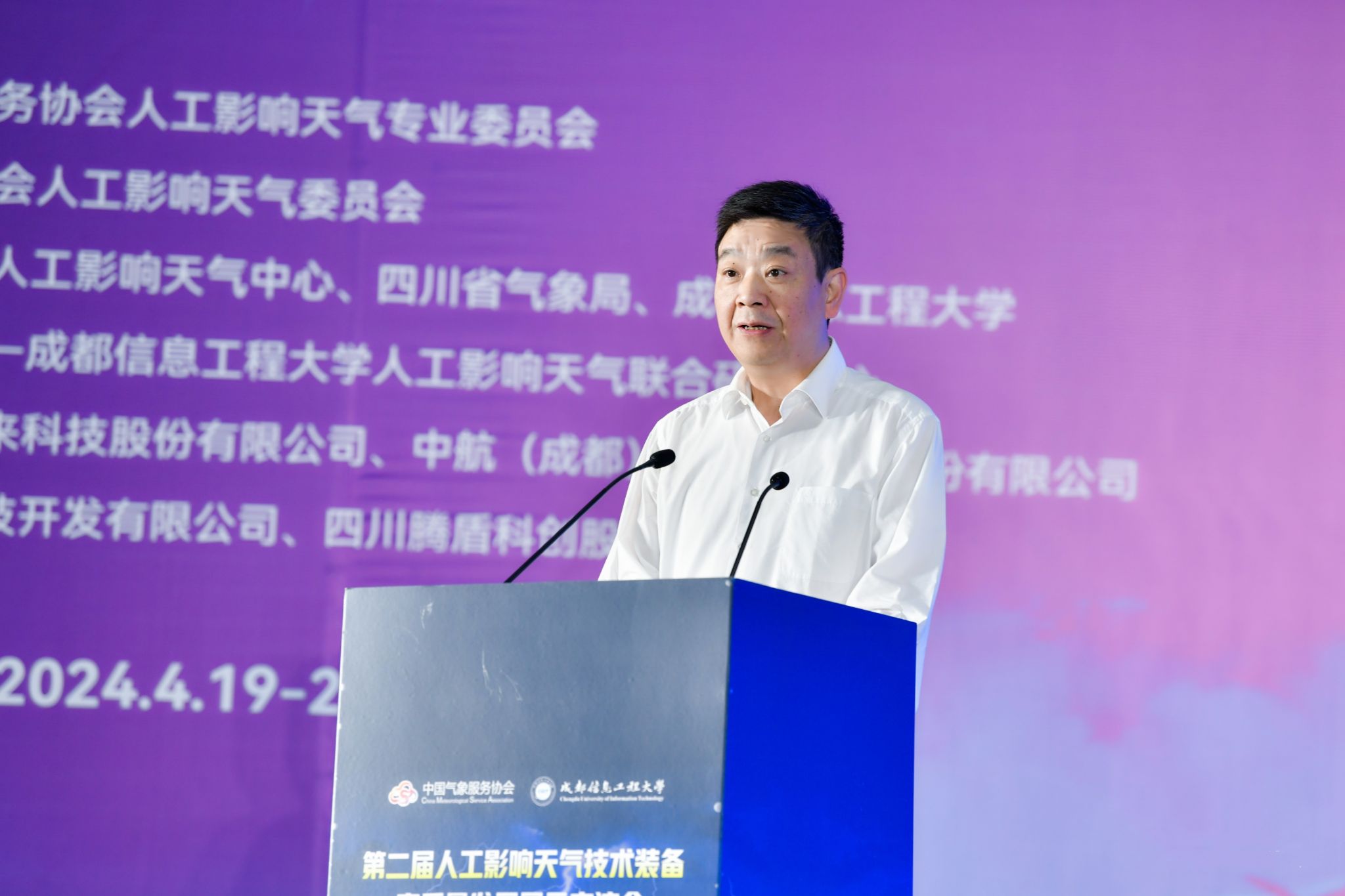 中国气象服务协会会长许小峰,中国气象局减灾司人影处处长孙锐,中国气象局人工影响天气中心主任李集明、副主任周述学,四川省气象局局长彭军、副局长姚志国,学校校长何建新、副校长舒红平,四川省学校国有资产与教育装备中心资产管理中心、四川省经济和信息化厅装备工业处、双流区人民政府、成都芯谷发展服务局等单位嘉宾,以及来自全国各地的人工影响天气协调管理、装备生产、技术研发、业务应用、服务保障等领域的200余名专家出席会议。近40家气象行业高科技企业参加了人工影响天气技术装备高质量发展建设成果展。