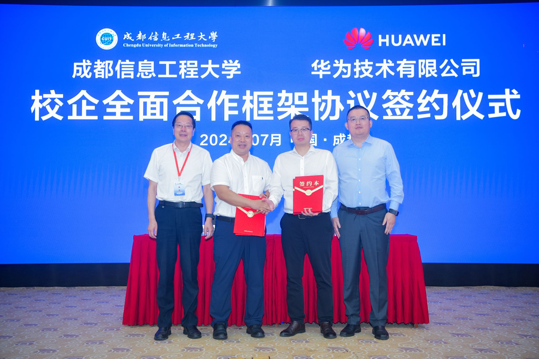 学校副校长舒红平和华为川藏政企教育医疗总经理张志华分别代表双方单位,签署了江南买球——华为技术有限公司校企全面合作框架协议。沈火明、赵祎鑫见证了双方开启深度合作、共创辉煌的里程碑时刻。