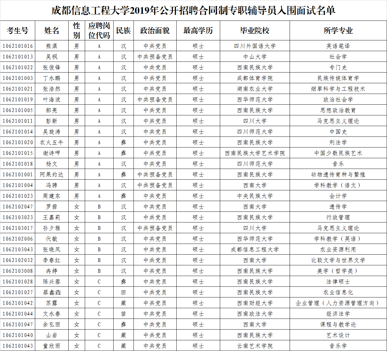 对面试名单如有异议,请于7月24日18:00前以真实姓名向纪委办公室书面或电话反映(028-85966475)。
