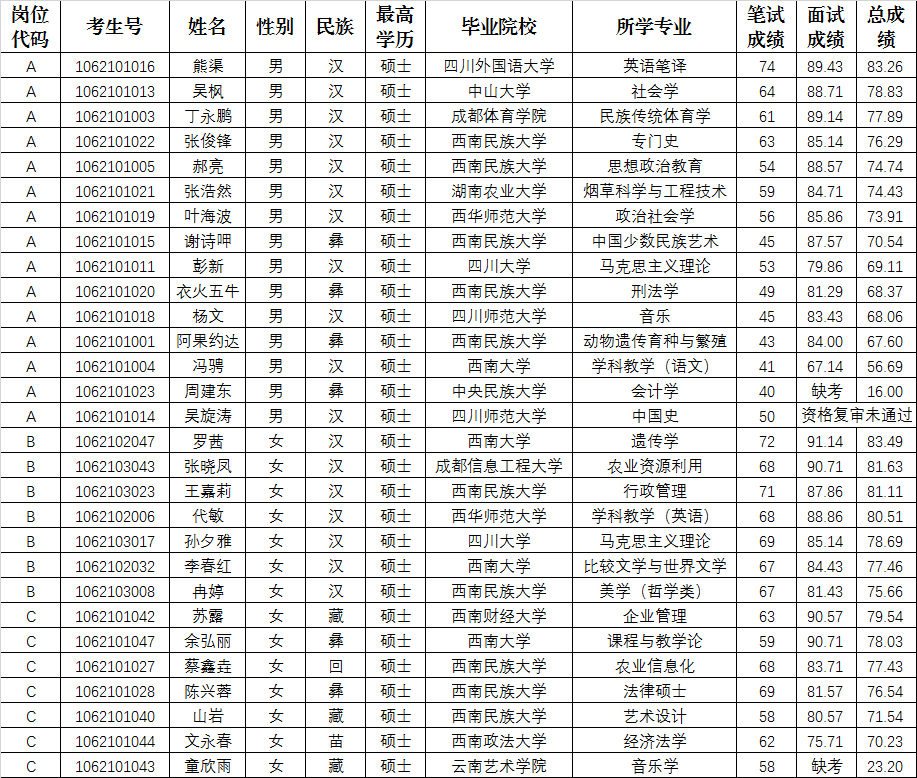 江南买球2019年公开招聘合同制专职辅导员面试及总成绩名单
