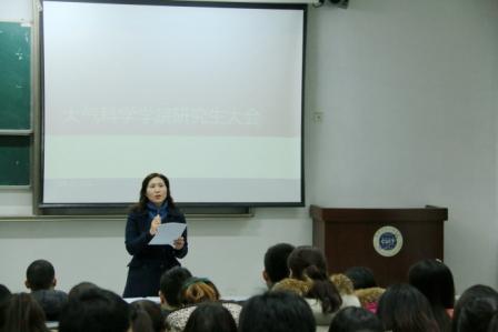 【本网讯】12月11日晚,大气科学学院在1301教室召开研究生会成立大会。学院党总支书记张小红,副院长陈权亮,办公室主任兼研究生秘书曹露以及全体研究生参加会议。学院研究生会副主席电子工程学院研究生马仕茗同学应邀出席会议。本次会议由曹露主持。
