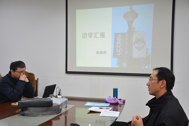 张路桥首先介绍了访学单位康涅狄格大学工程学院计算机科学与工程系(Department of Computer Science a nd Engineering, School of Engineering, University of Connecticut)、合作教授(Associate Professor Bing Wang)团队的基本情况。然后重点汇报了国外高校科研、教学组织、管理的有关内容,如:基本科研环境与条件、科研评价体系、教授间协作、团队日常科研活动开展、科研项目申报与结题、课程考核与成绩构成、助教的职责与助教制度等。除此之外,还对比了国外内高校在科研、教学组织与管理上的区别,对如何将国外先进的科研、教学经验引入到日常科研、教学管理中提出了自己的一些想法。